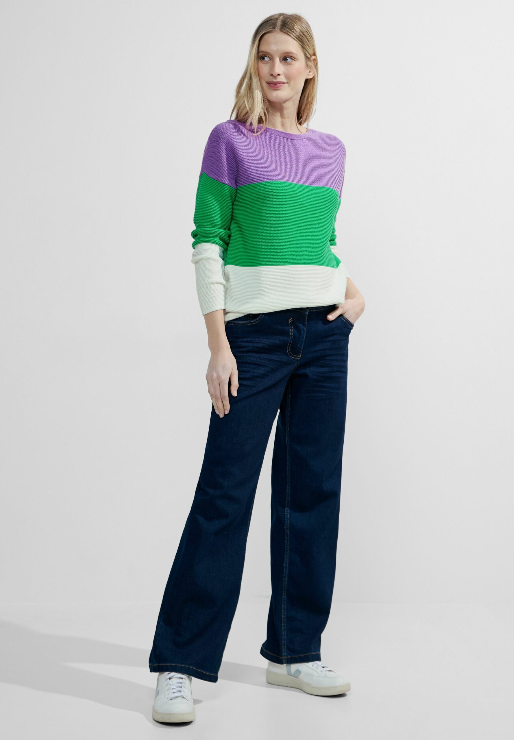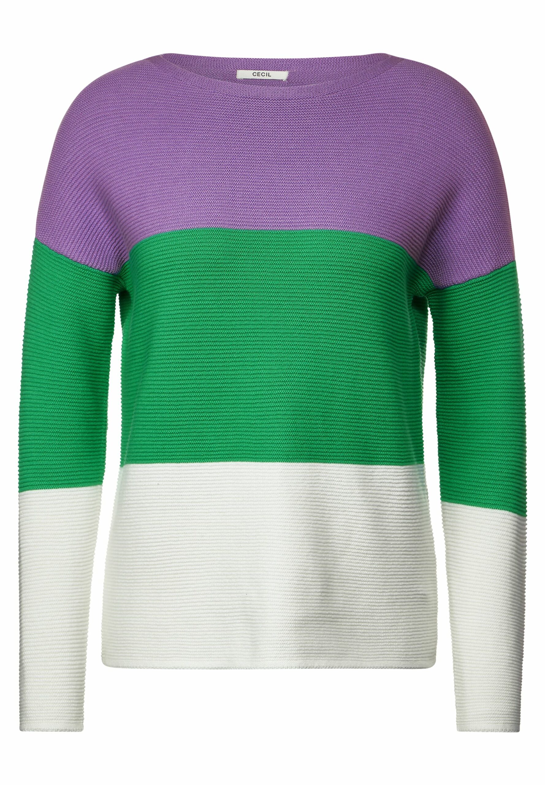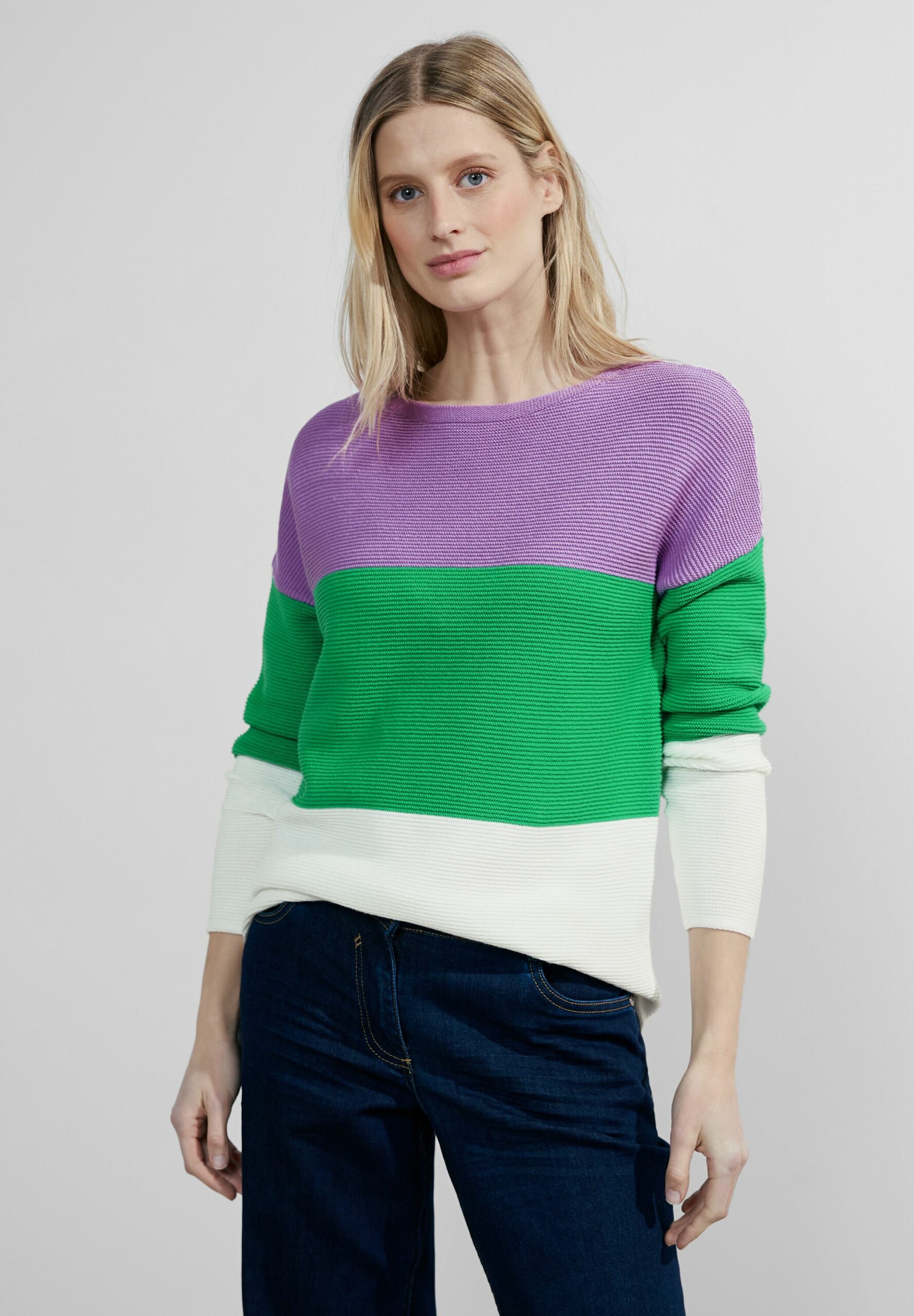Der Damen Strickpullover von CECIL zeigt sich mit mehrfarbigen Blockstreifen, einem U-Boot Ausschnitt und leichter Struktur. Dieser Grobstrickpullover, aus Baumwolle gefertigt, verleiht deinem Outfit einen frischen und lebendigen Look. Er eignet sich perfekt, um deine Outfits aufzupeppen und sorgt für einen lässigen Auftritt.