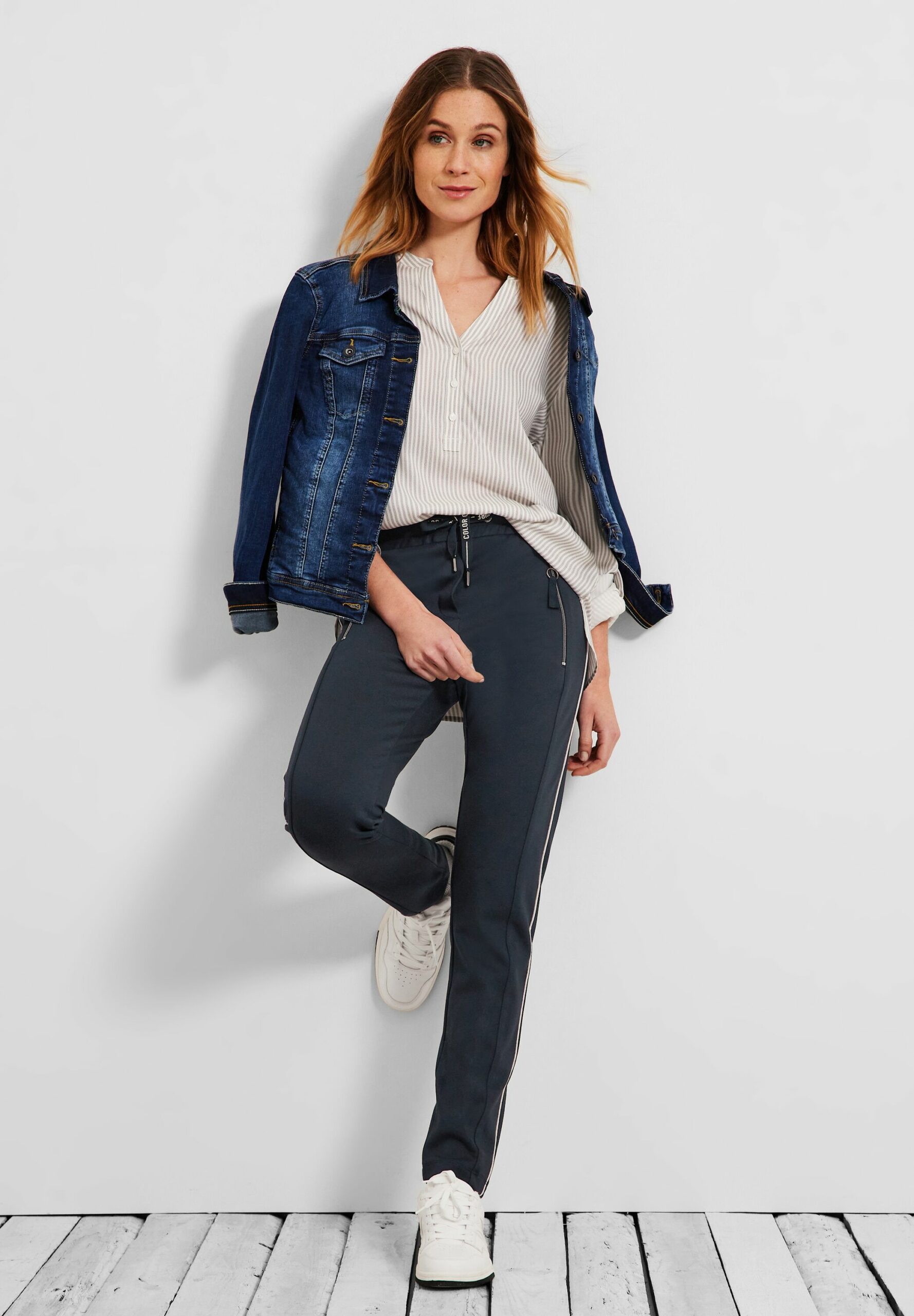 CECIL Casual Fit Damenhose, Midlde Waist, Slim Legs, Zippertaschen, Tunnelzugban d, Unifarbe, Kontrastnaht