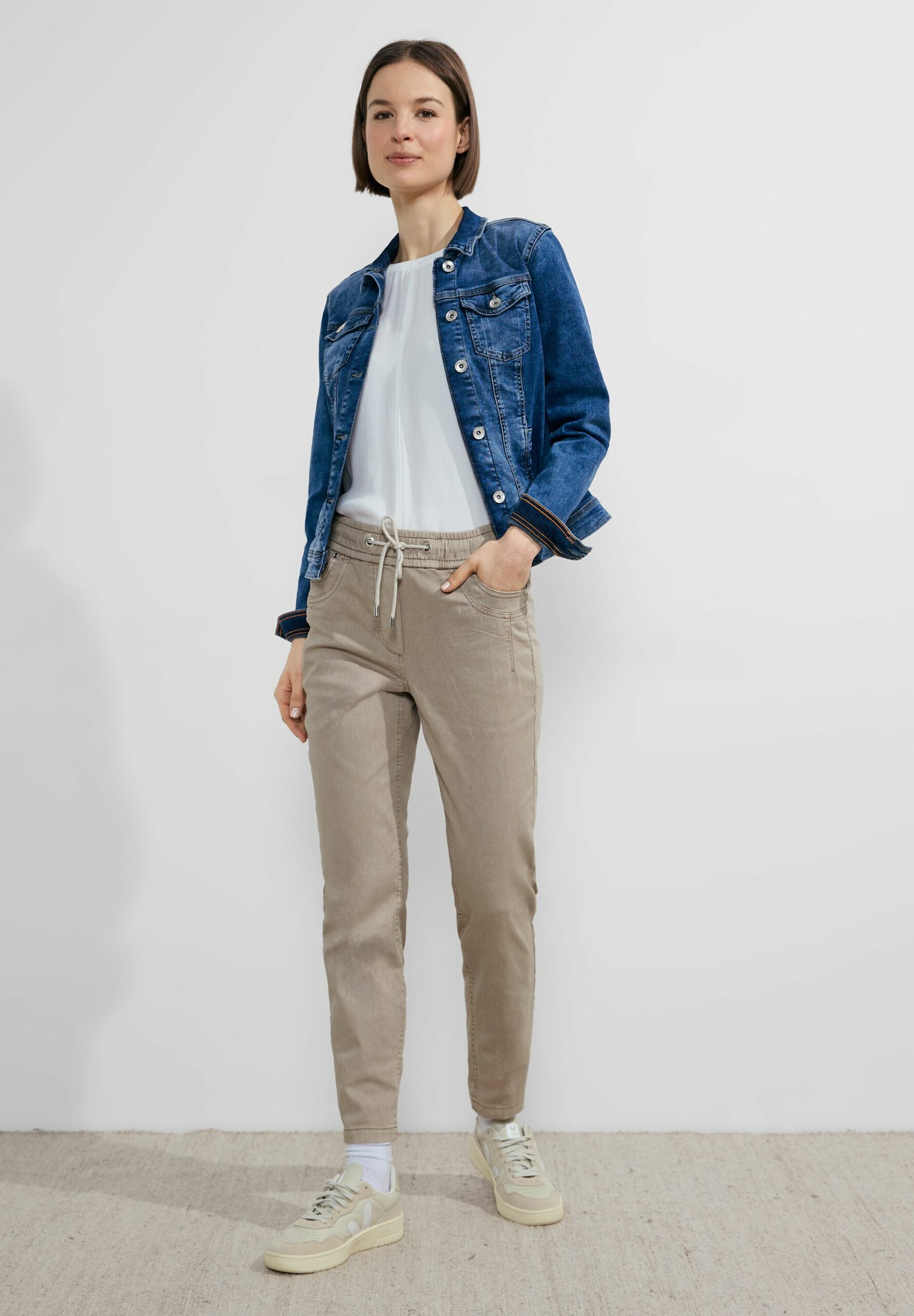 Die Joggpants von CECIL im Style Tracey bietet Damen einen entspannten Casual Fit, eine Middle Waist und Slim Legs für einen bequemen und vielseitigen Look. Mit ihrem Stretchanteil begleitet sie dich mühelos durch den Tag, egal ob du unterwegs bist oder dich zu Hause entspannst. Tunnelzug und Taschen ergänzen den Style.