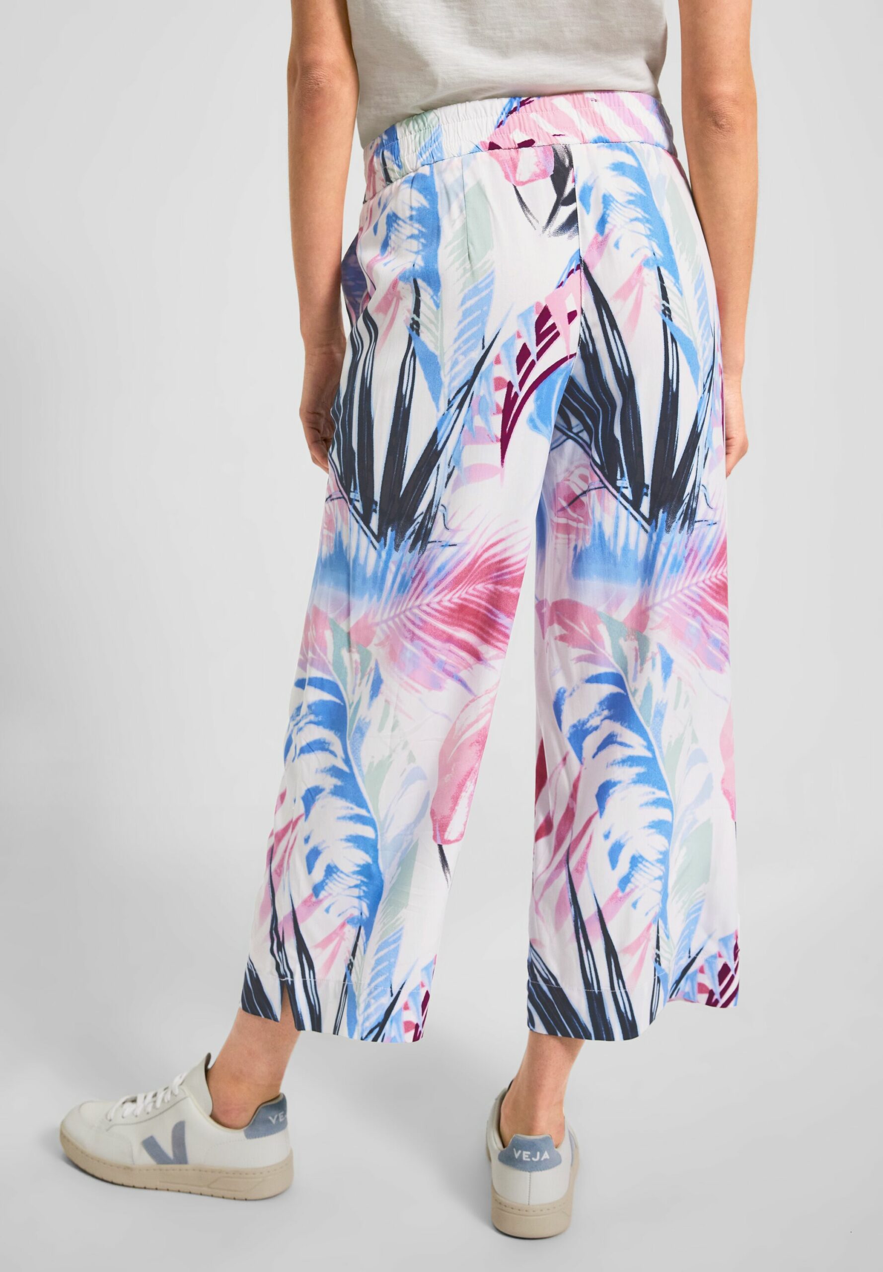 Be happy! Lässige Casual Fit Damenhose im Style Neele von CECIL, die ready for summer ist. Mit farbenfrohem Blättermuster ist sie ein Hingucker! In Middle Waist und mit Wide Legs setzt sie auf einen legeren Fit. Die Eingrifftaschen und der Elastiksaum runden den Style gekonnt ab.