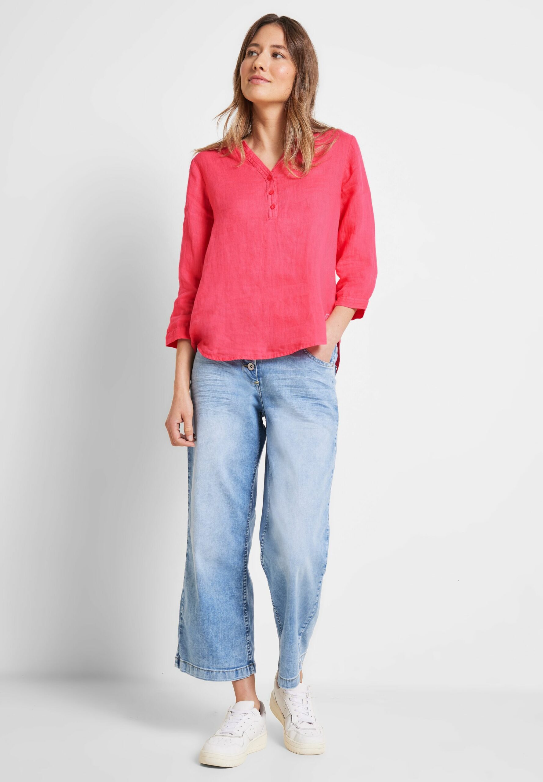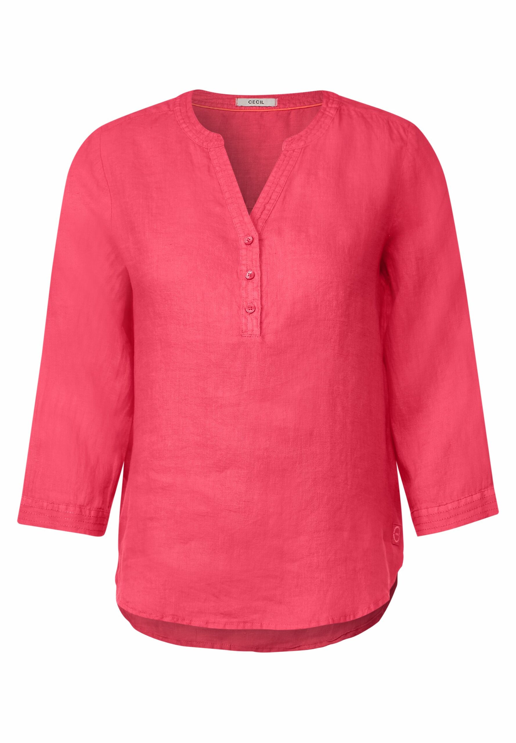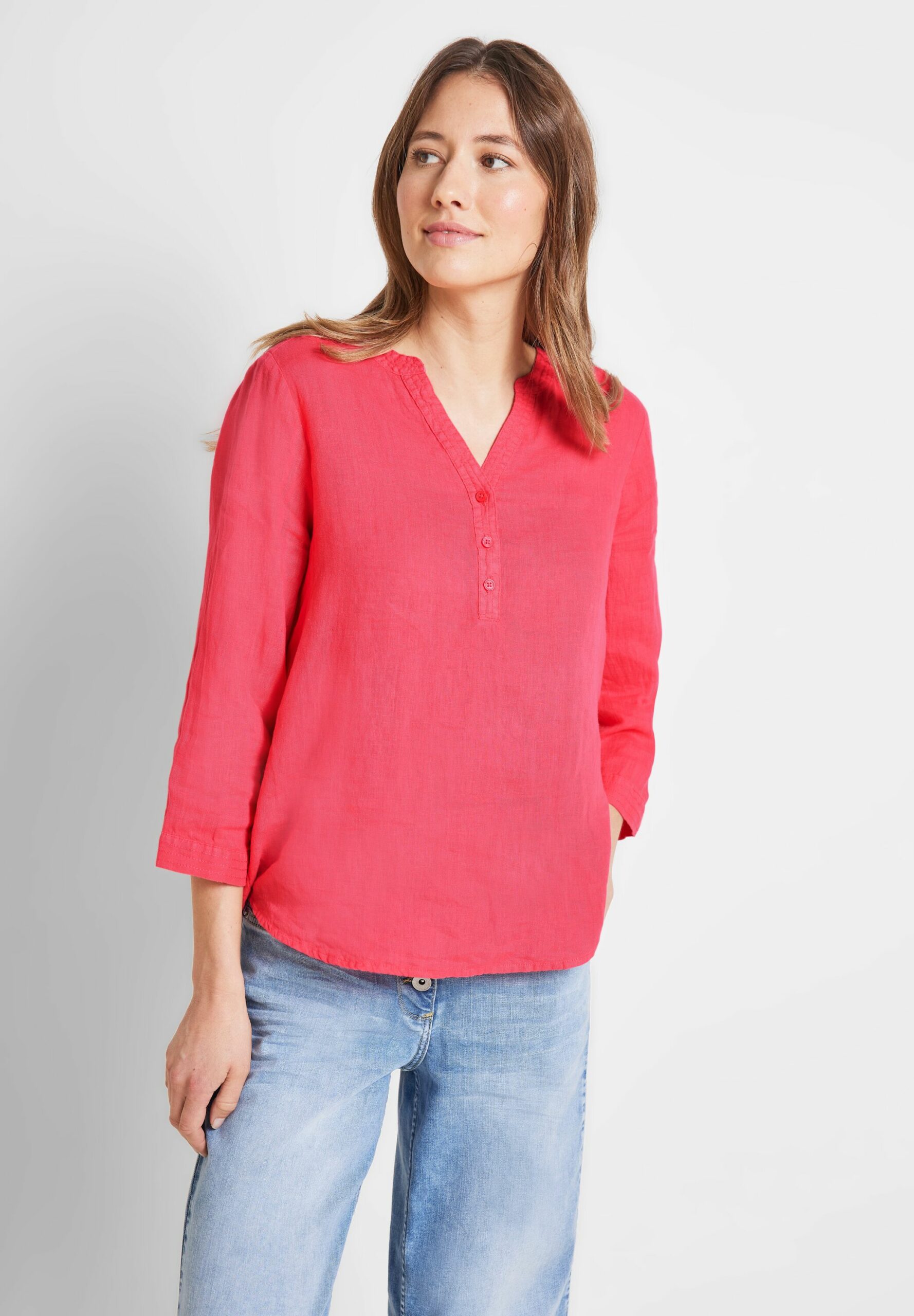 CECIL, Damenbluse, Leinen, Unifarbe, 3/4-Ärmel, geschlitzter Rundhalsausschnitt, kurze Knopfleiste
