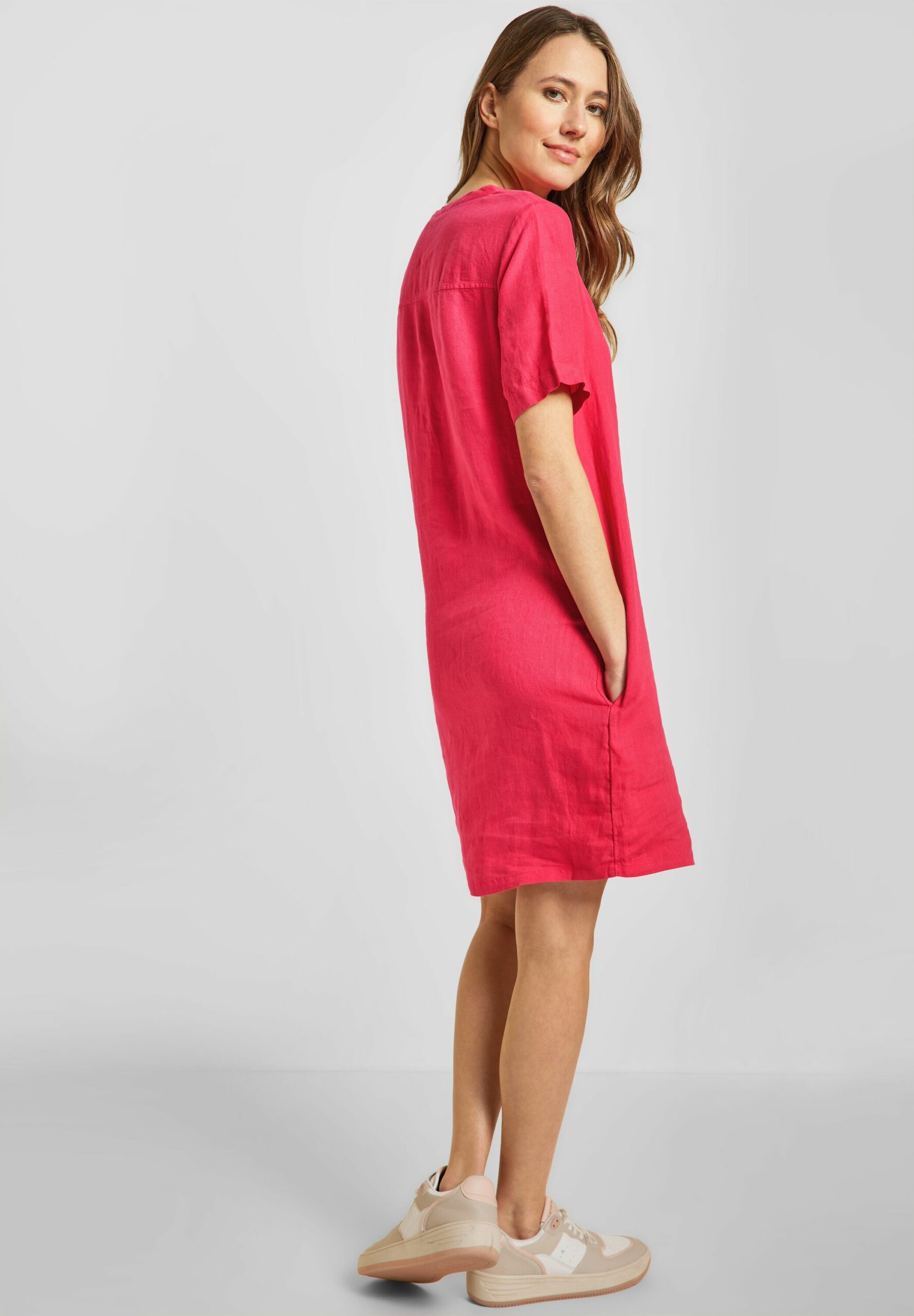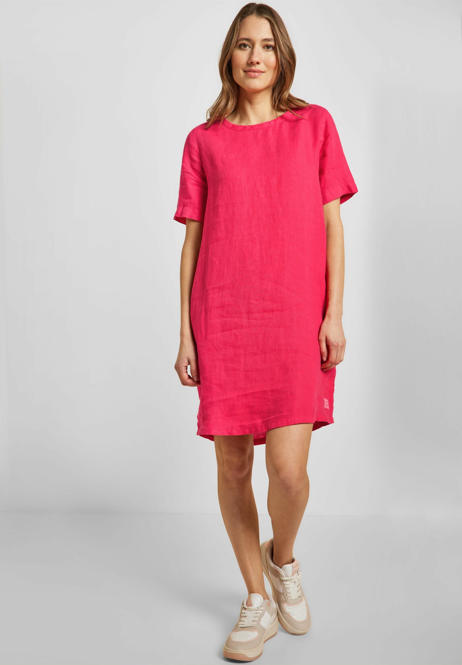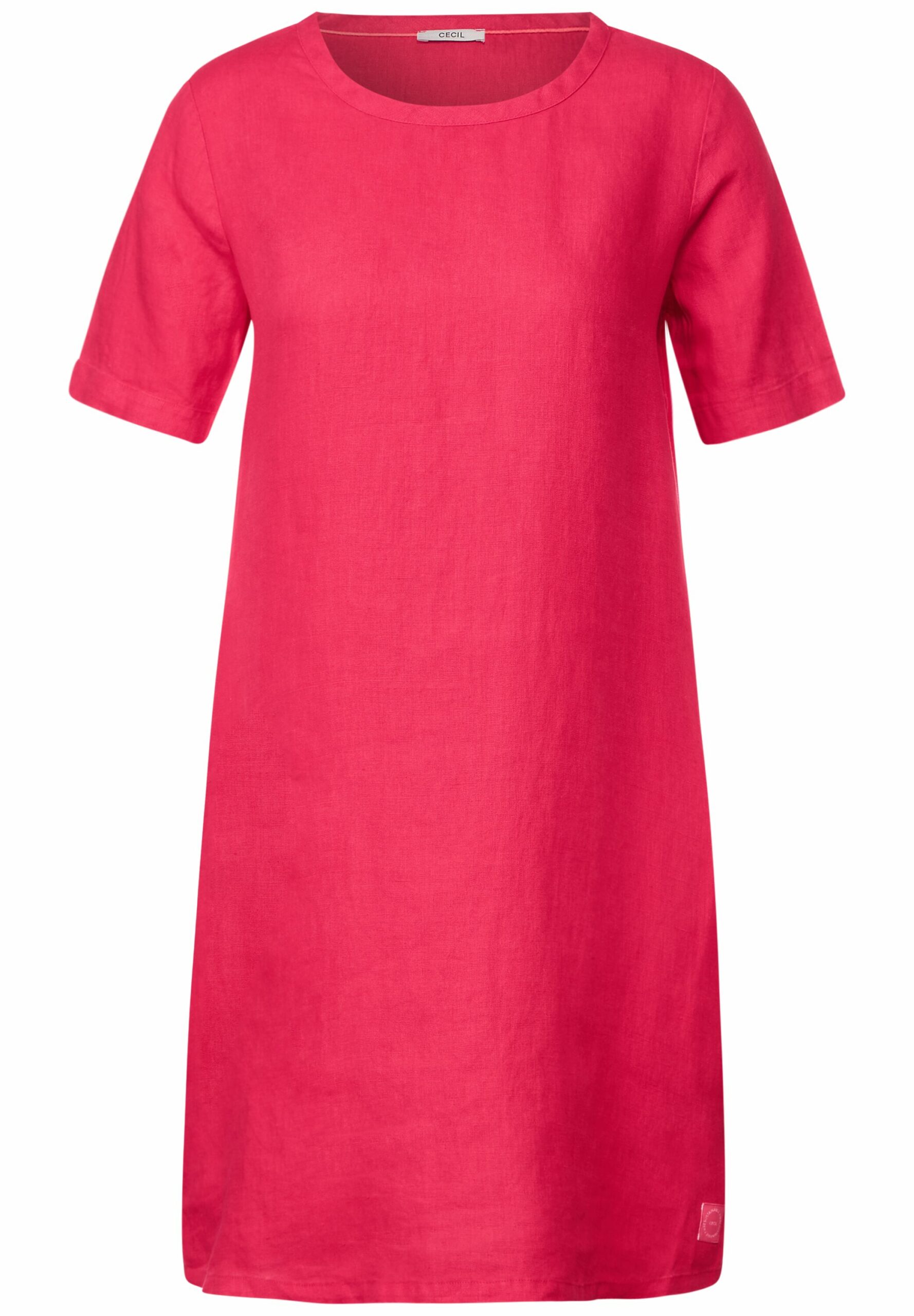Summer is calling! Sommerliches Kleid aus luftigem Leinen von CECIL. In strahlender Unifarbe ist es besonders an warmen Tagen eine gute Wahl. Kurze Ärmel und ein Rundhalsausschnitt machen das knielange Kleid zum zeitlosen Must-have für unsere Sommergarderobe.