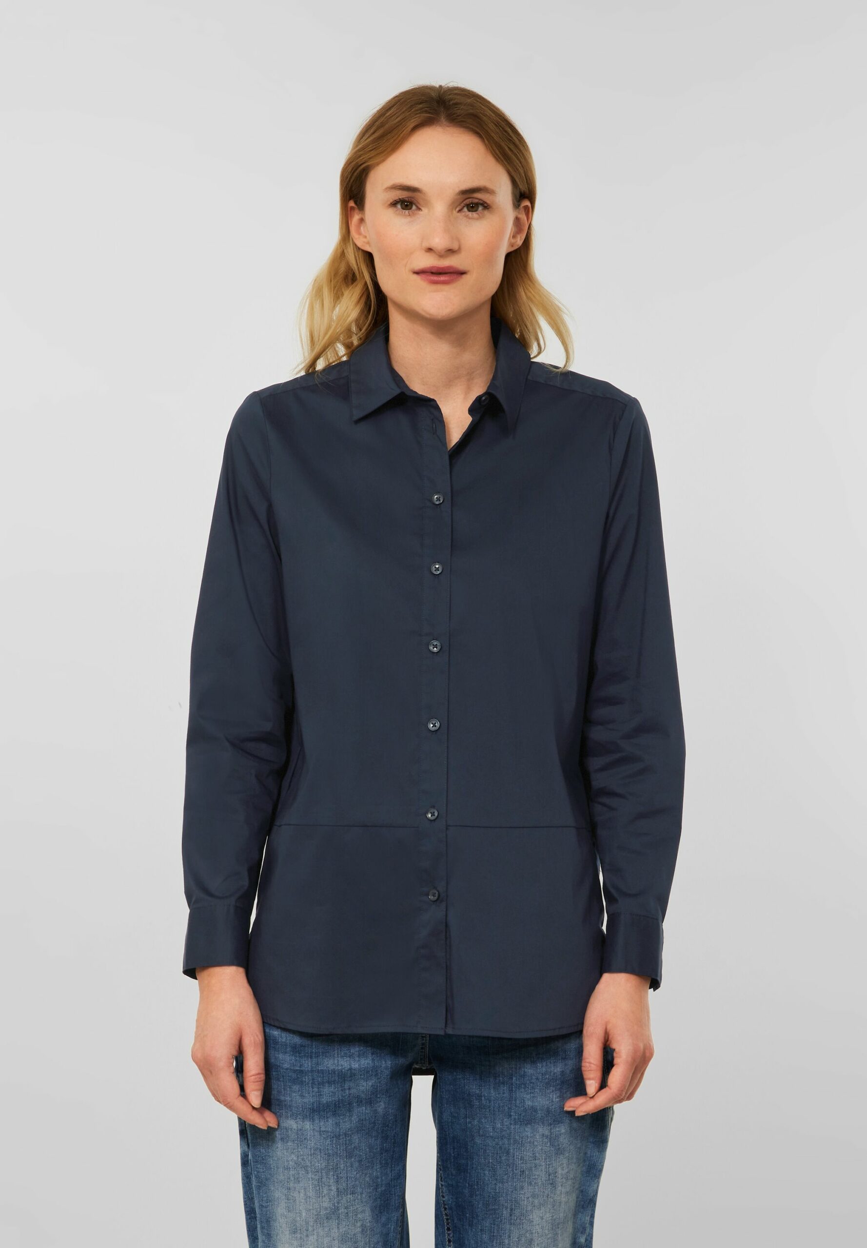 Will ich haben! Feminine Damenbluse von CECIL mit durchgehender Knopfleiste und Hemdkragen. In Büro und Freizeit lässt sich dieser Klassiker in Longform gut tragen. Die Unifarbe lädt zum Kombinieren ein.