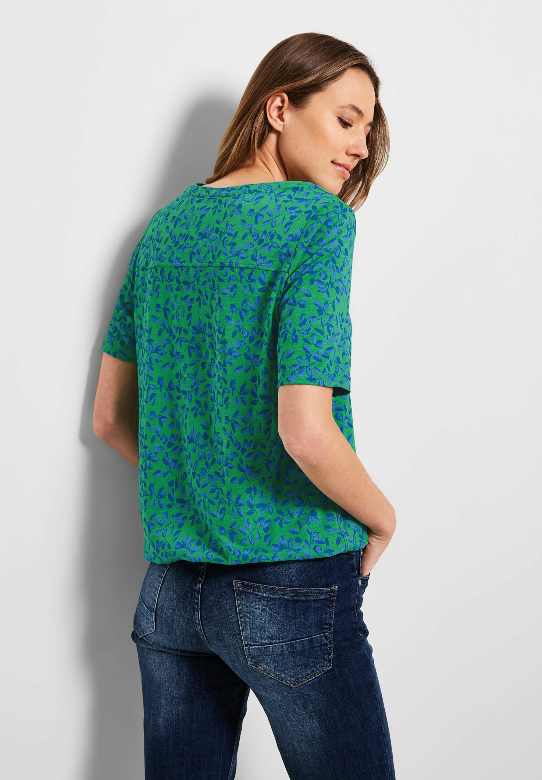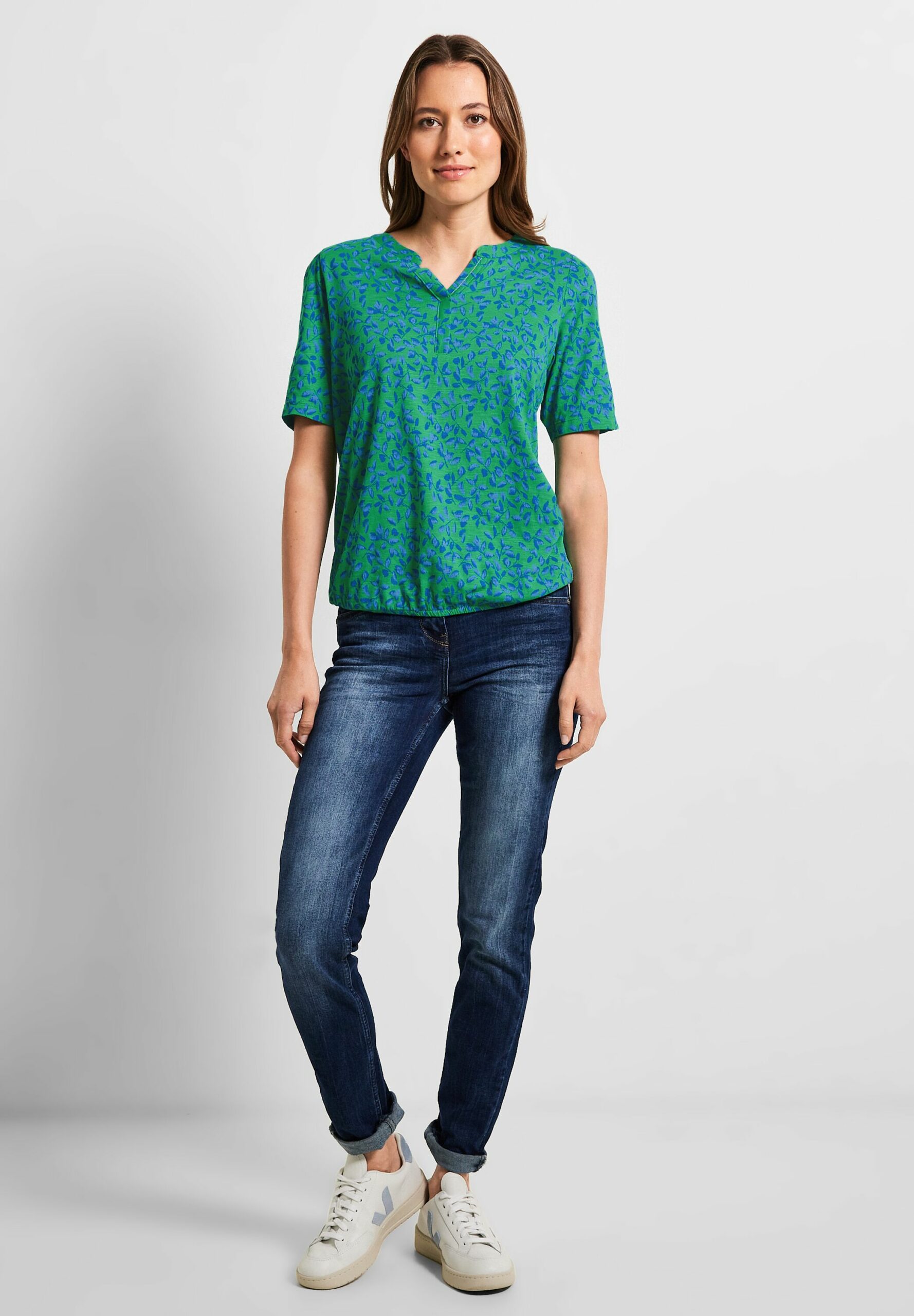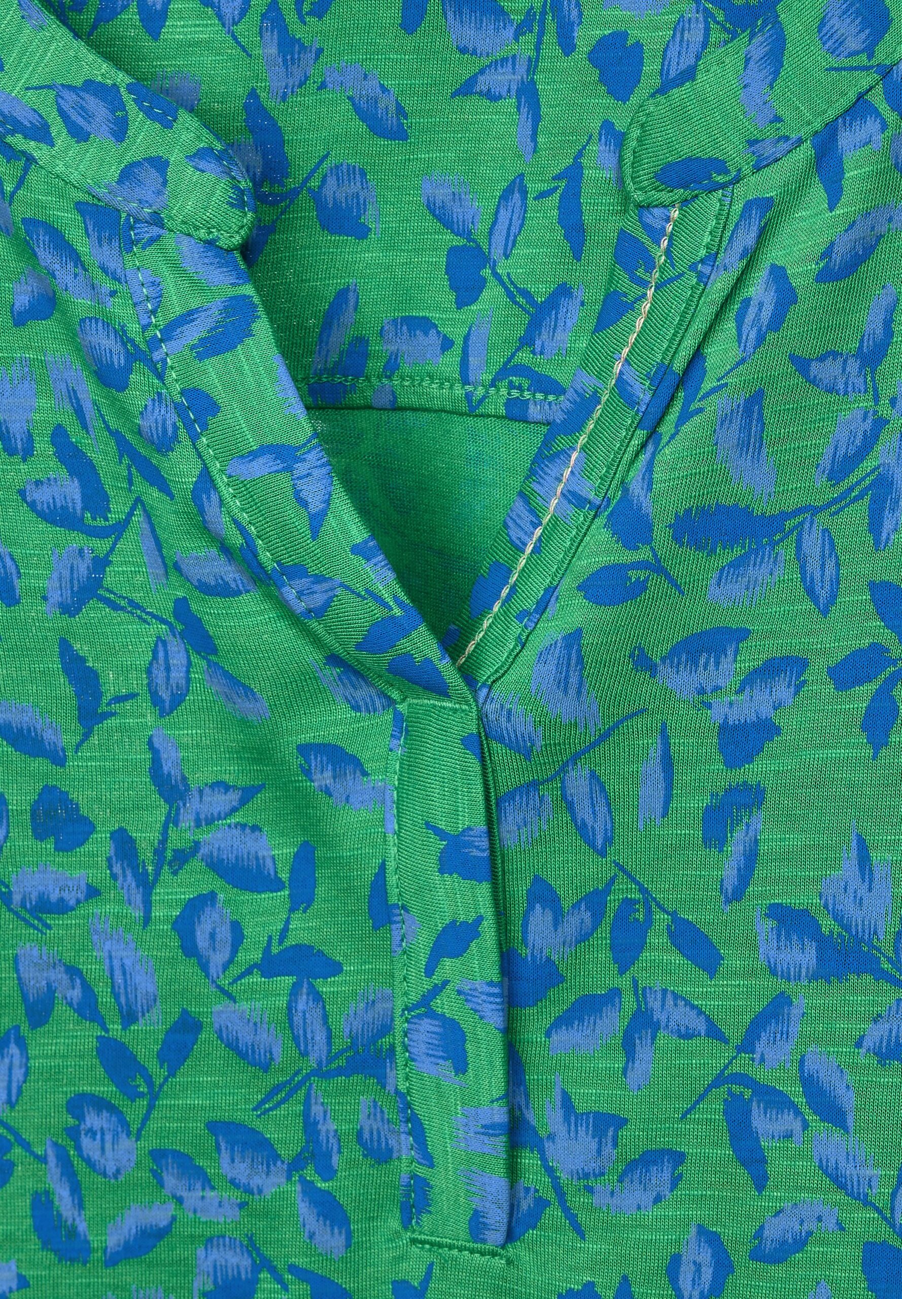 Summerlove! Für sommerliche Vibes sorgt dieses Damen Halbarm T-Shirt von CECIL. Mit seinem floralen Minimalmuster ist es ein Hingucker. Der geschlitzte Rundhalsausschnitt und der Elastiksaum setzen lässige Akzente.