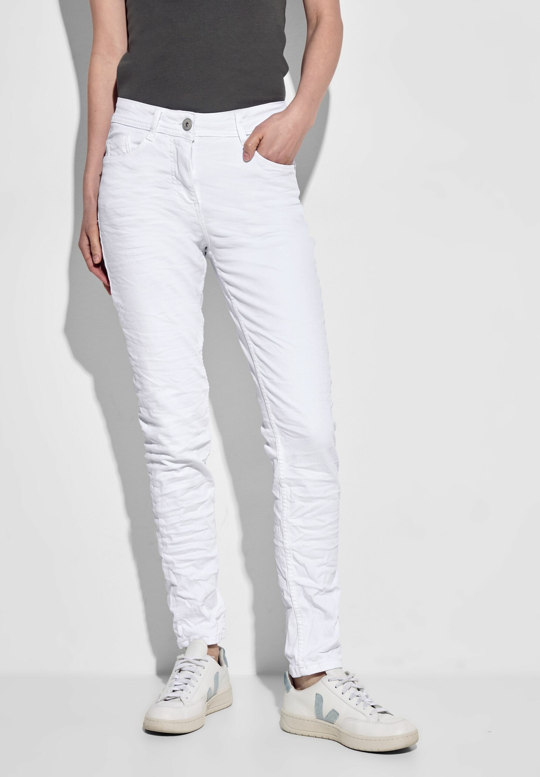 Die Slim Fit Jeans im Style Toronto von CECIL für Damen ist ein cooler Begleiter für alle Gelegenheiten. Mit einem 1-Knopf- und Reißverschluss, Slim Legs und 5-Pocket Design verbindet sie modische Raffinesse mit Funktionalität. Der High Waist Schnitt verleiht eine schmeichelhafte Silhouette und macht sie zu einem vielseitigen Allrounder in deinem Kleiderschrank.