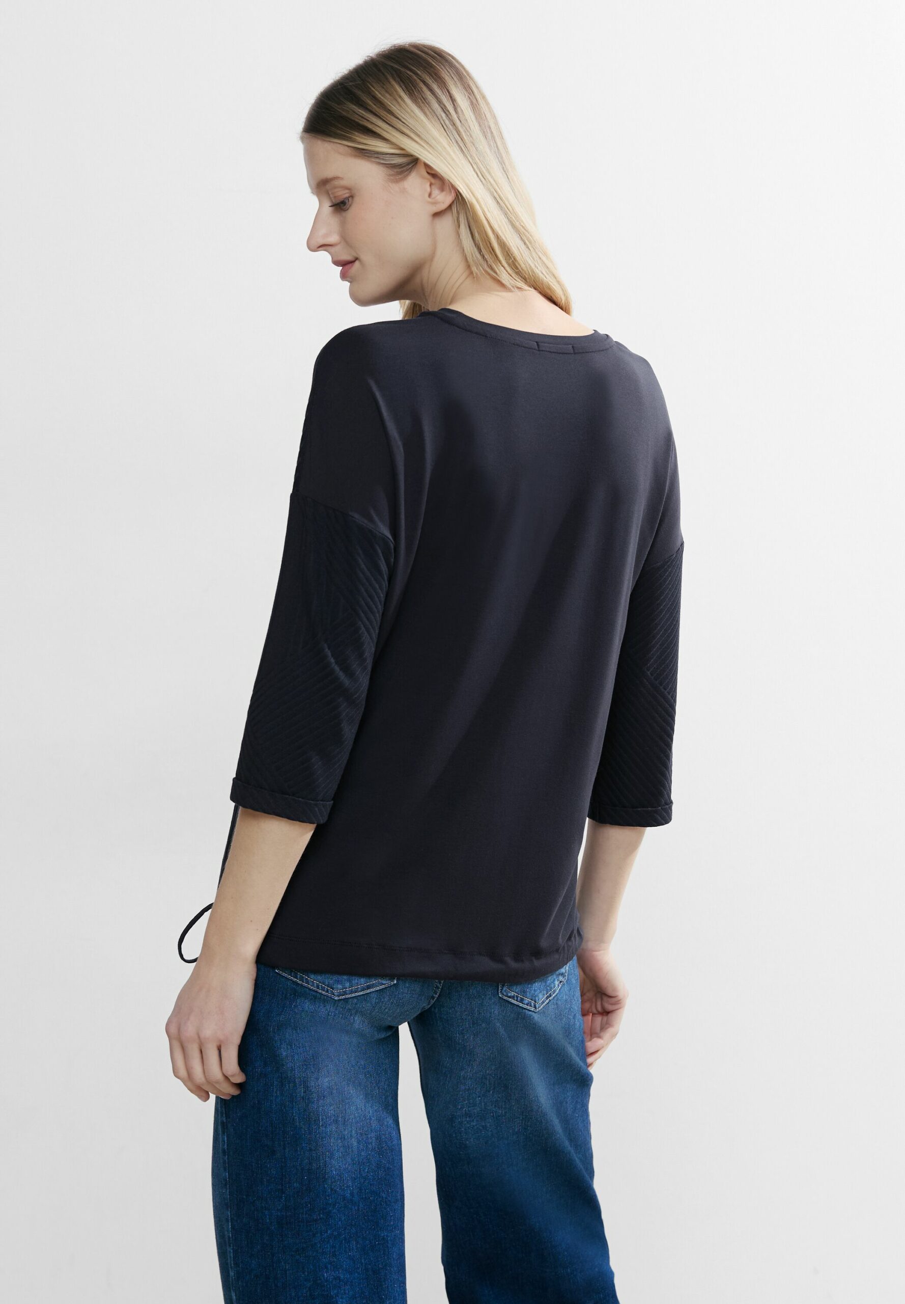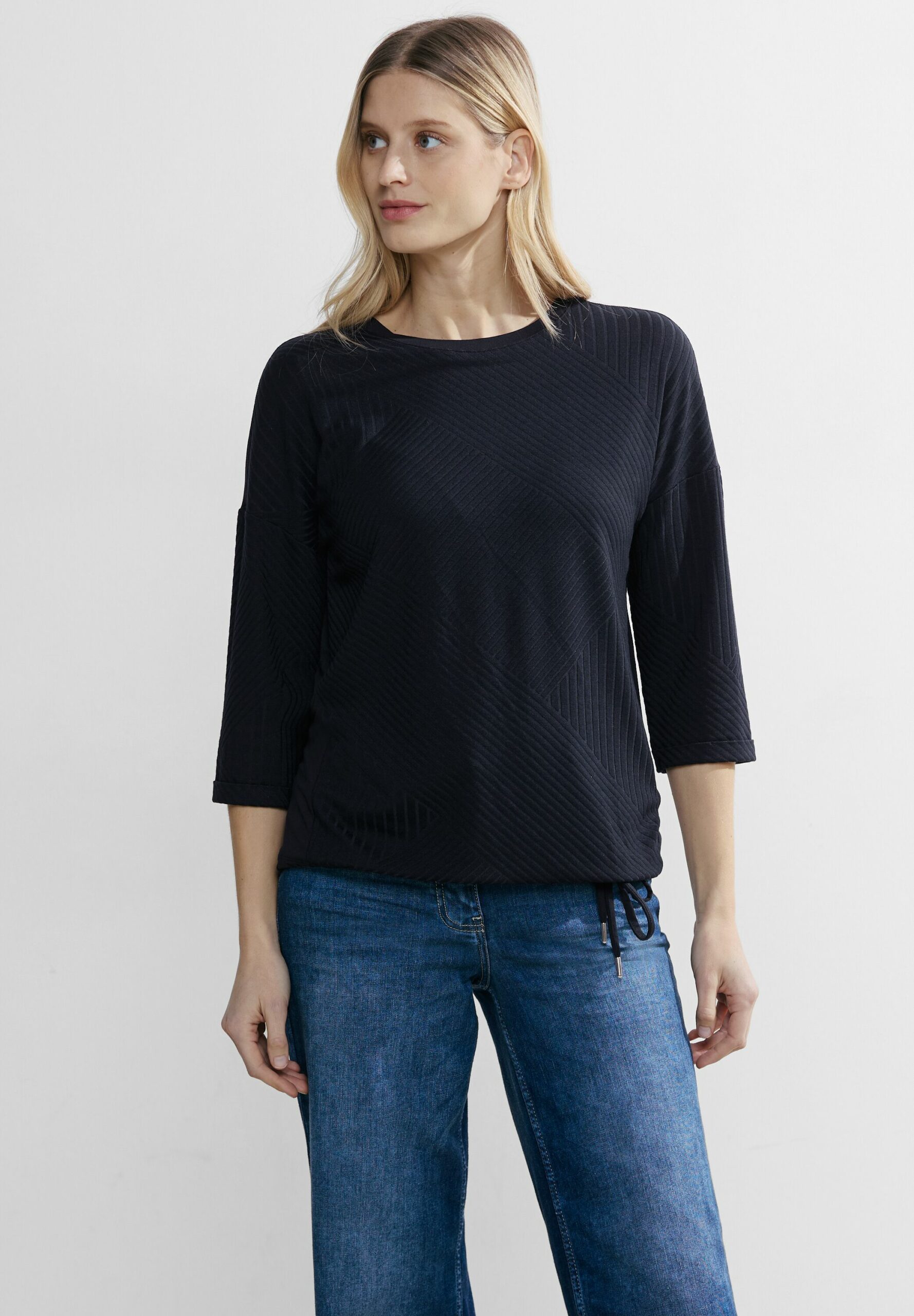 CECIL Damenshirt, 3/4 Arm, Tunnelzugband im Bund, Unifarbe, Struktur Mix, Rundhalsausschnitt