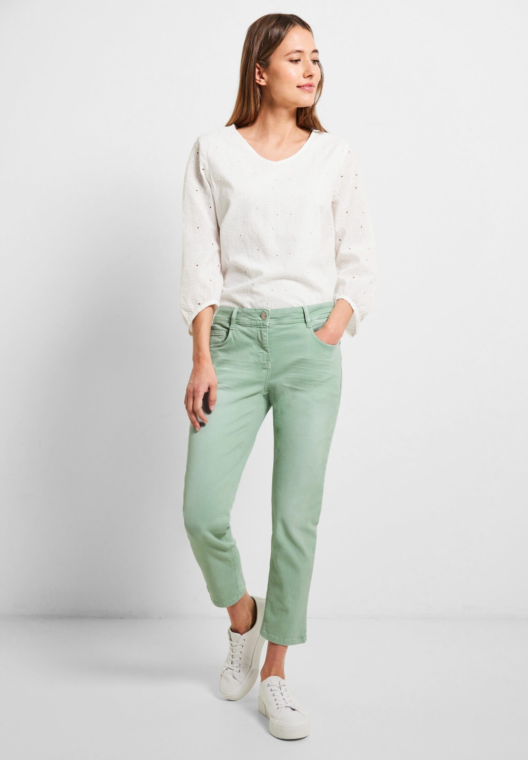 Fresh Pants! Die Damenhose im Style Scarlett von CECIL überrascht im Color-Style in frischen Farben, die Lust auf Urlaub machen. Dazu passt die sommerliche 7/8-Länge. Locker geschnitten in Loose Fit und mit Middle Waist sowie mit einem Elasthananteil sitzt sie super bequem und lässig.