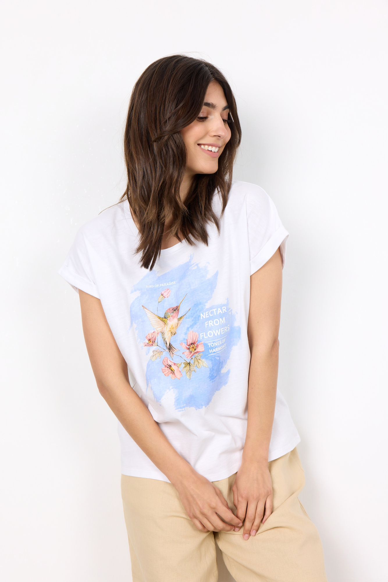 SC-Babette FP 52 ist ein feminines T-Shirt aus 100% Bio-Baumwolle. Dieses leichte T-Shirt hat eine lockere Passform, einen Rundhalsausschnitt und einen Druck auf der Vorderseite. Style es mit einer Jeans und Sneakers für einen klassischen Look
