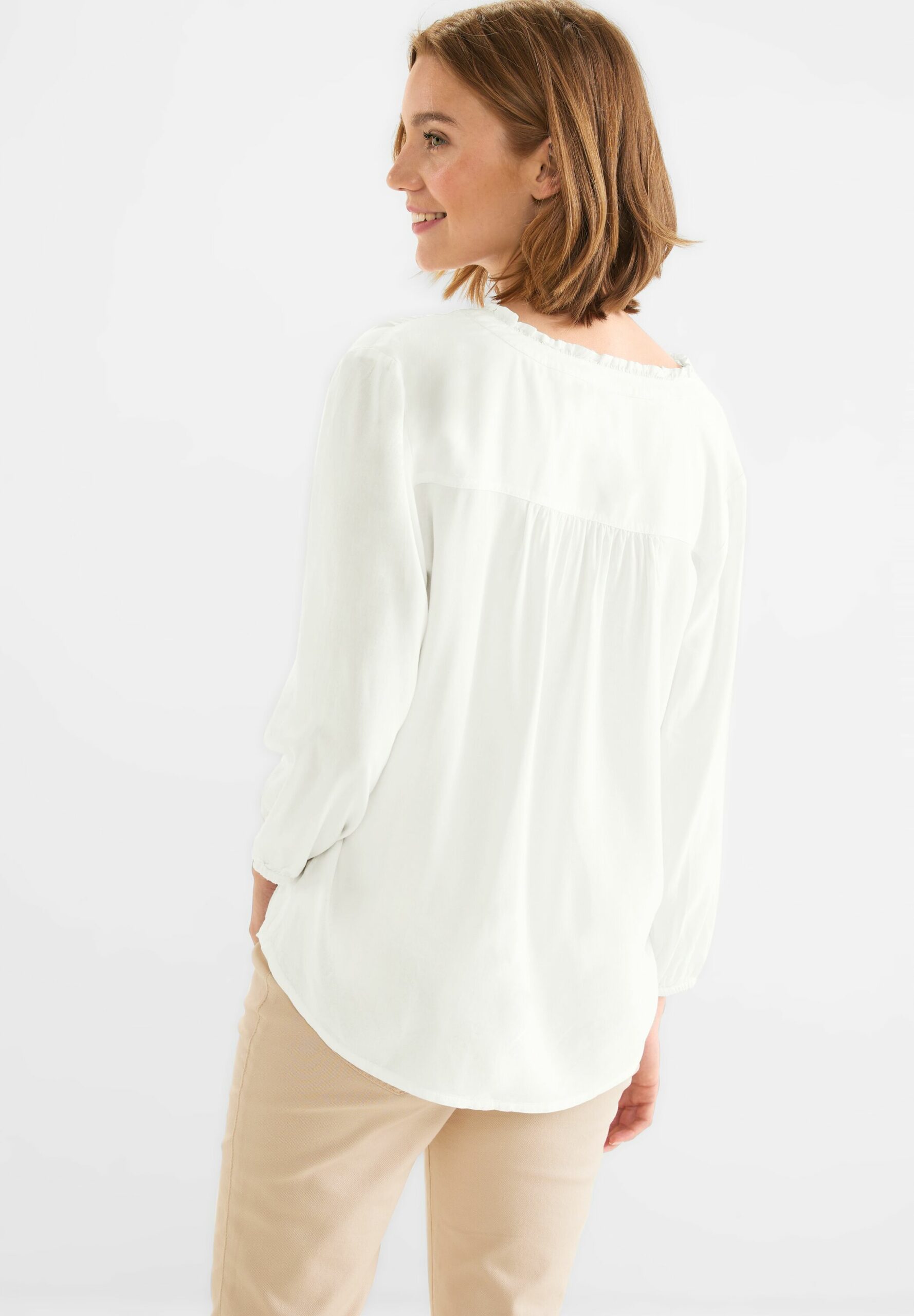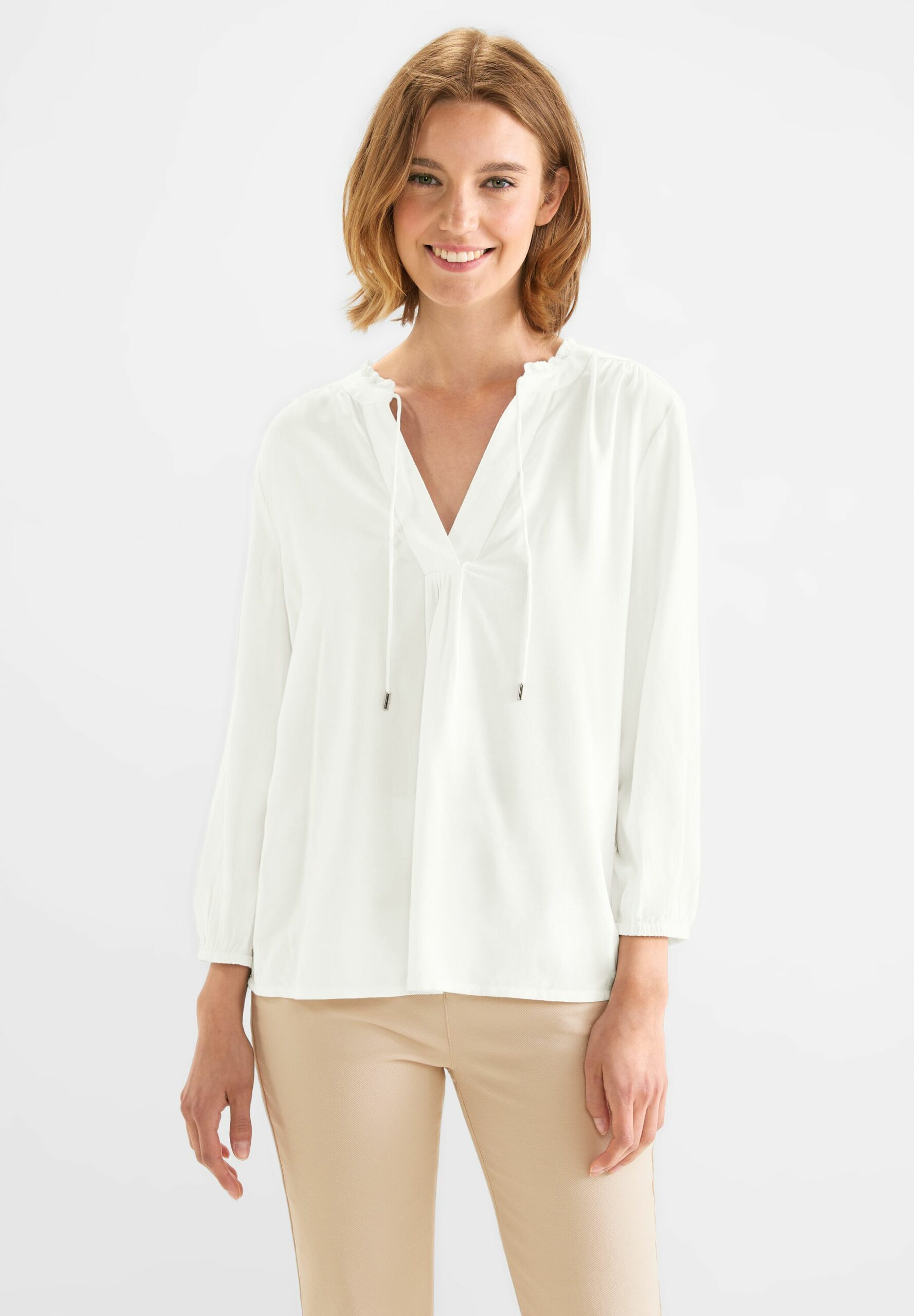 Street One Damenbluse, Unifarbe, 3/4 Ärmel, Gummizug im Ärmelsaum, Tunikabändche n, geschlitzter Rundhalsausschnitt, Viskose