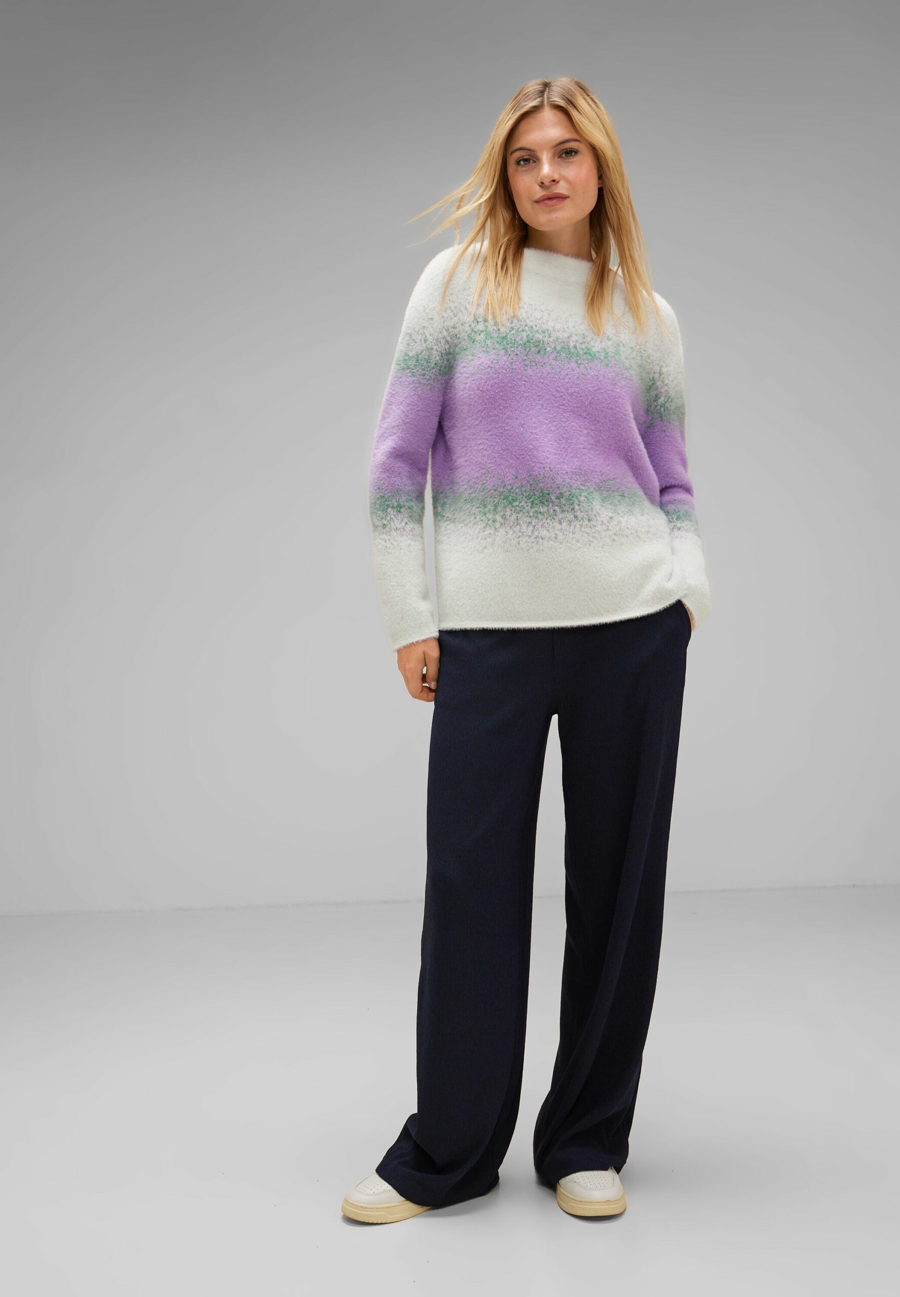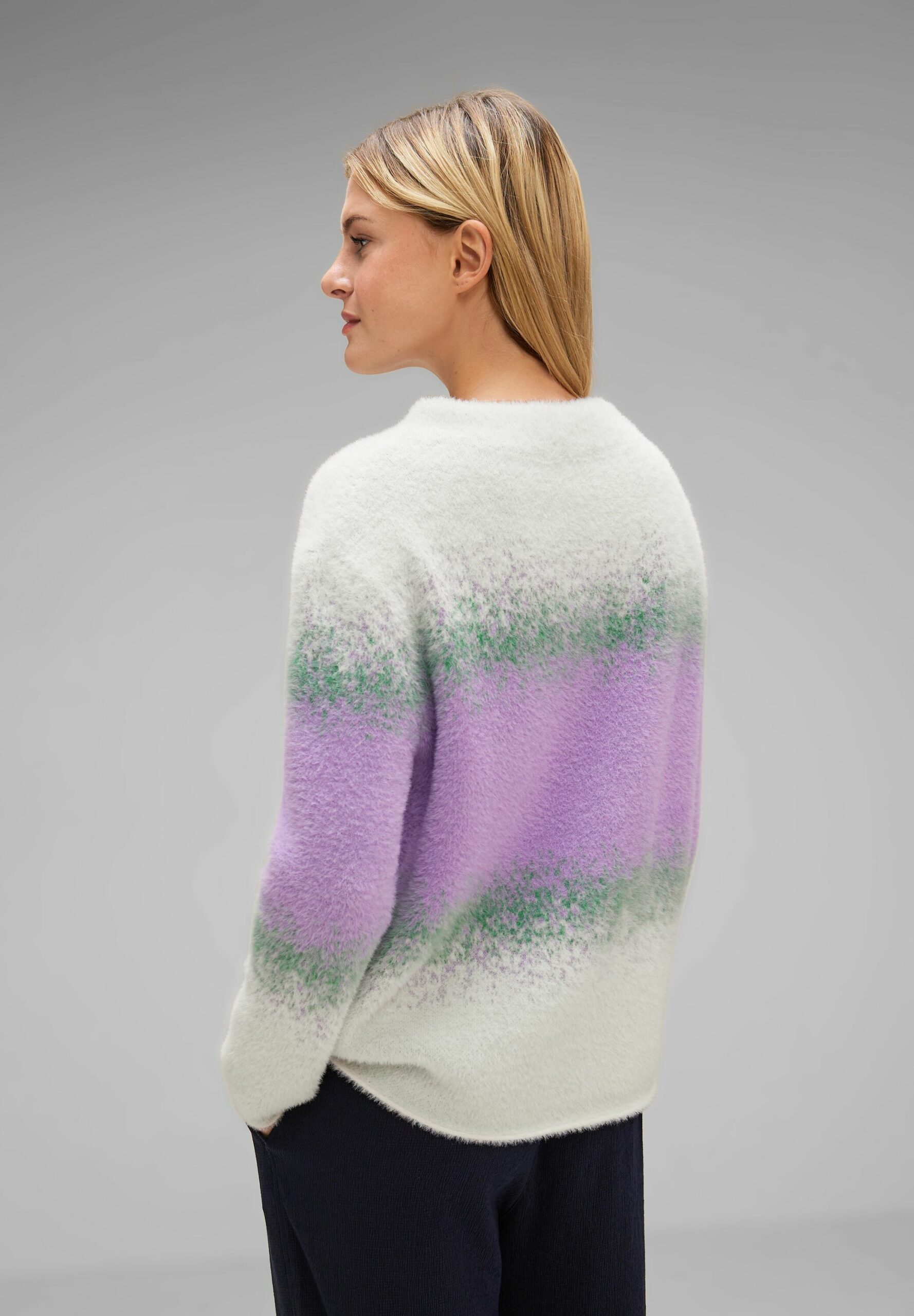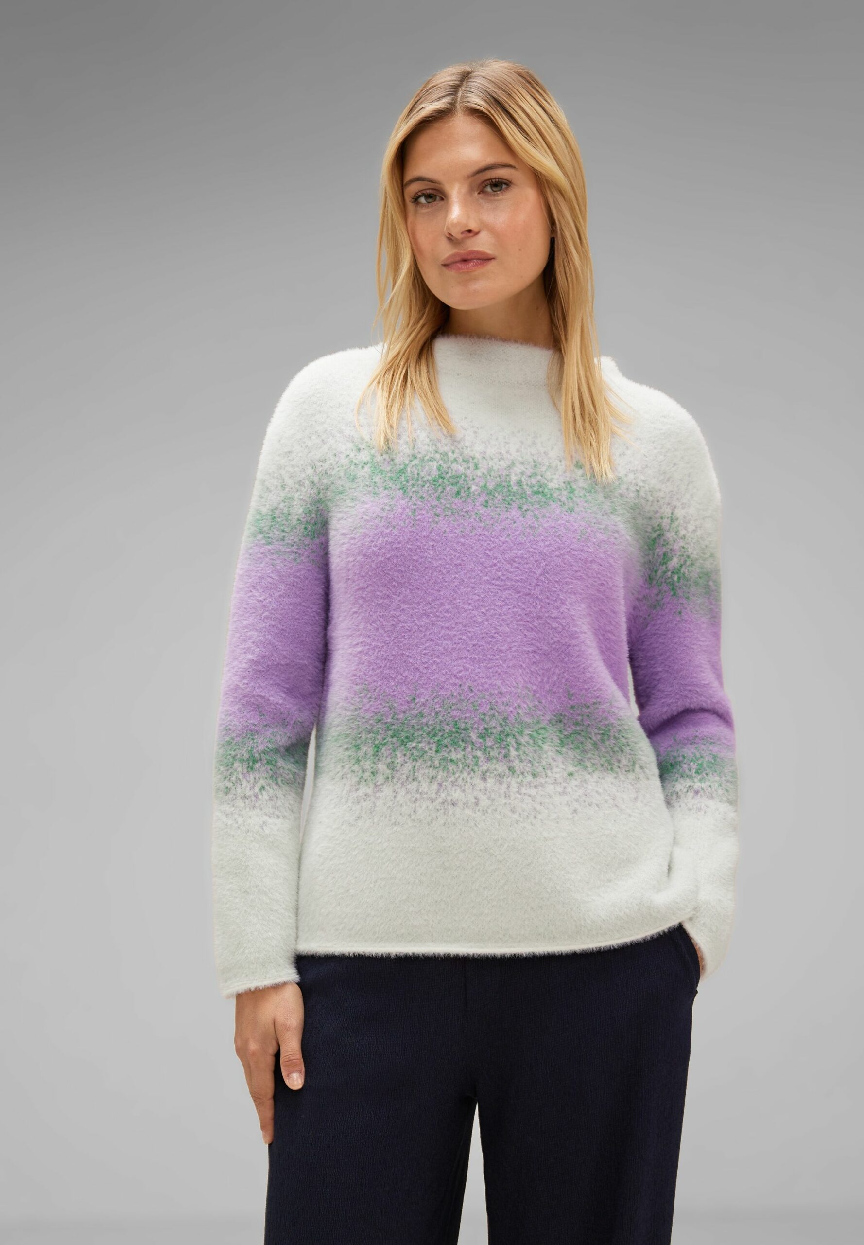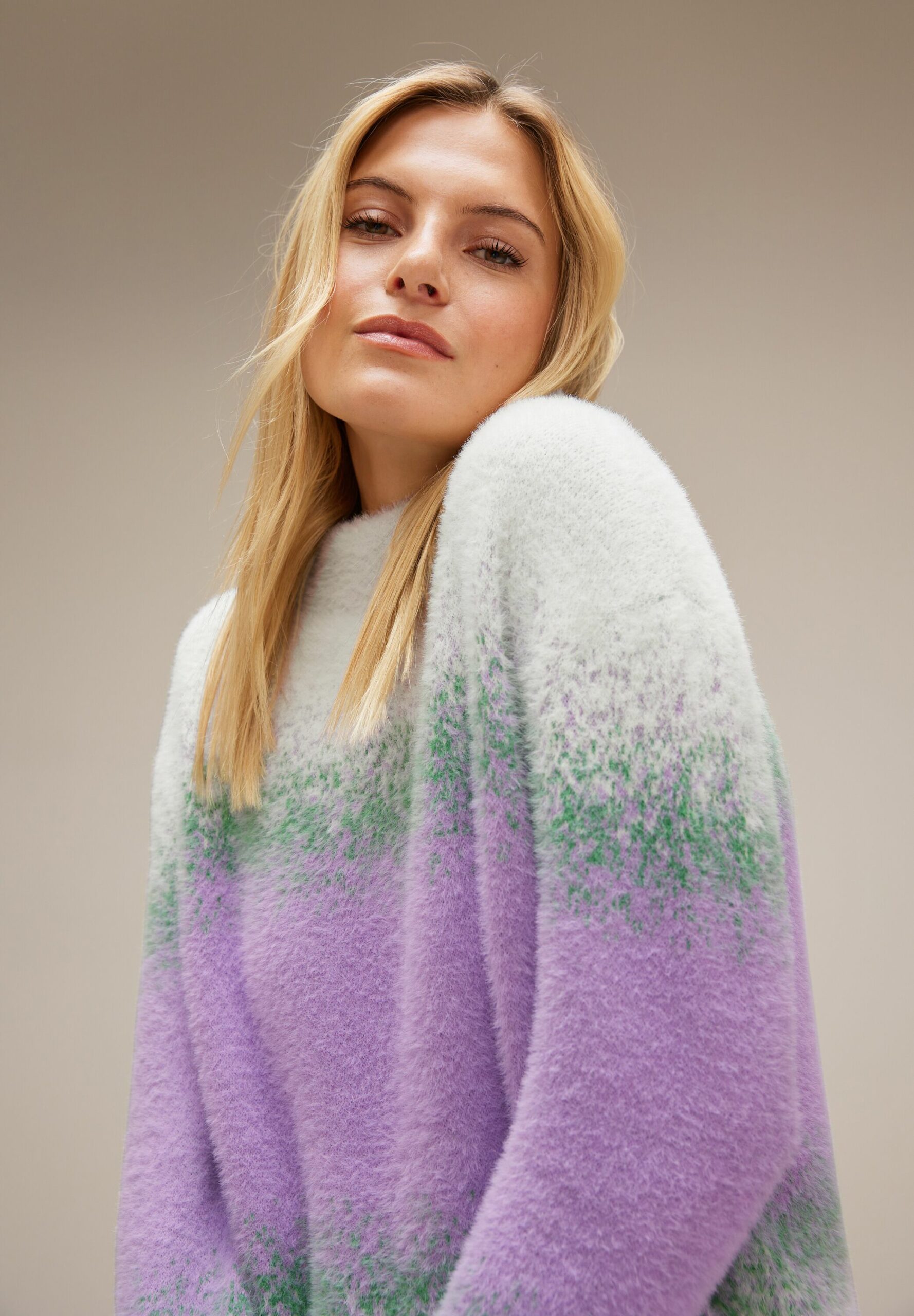 Farbenfroh und federleicht! Der Damen Strickpullover von Street One mit seinem Farbverlauf, dem U-Boot Ausschnitt und dem weichen Federgarn ist ein bequemes Lieblingsstück, das dich von Herbst bis Frühling begleitet. Mit seinem fröhlichen Muster und seiner angenehmen Tragequalität sorgt er für gute Laune und Wohlbefinden. Ob in der Freizeit oder im Büro, dieser Pullover lässt sich vielseitig kombinieren und verleiht deinem Outfit einen trendigen Look.