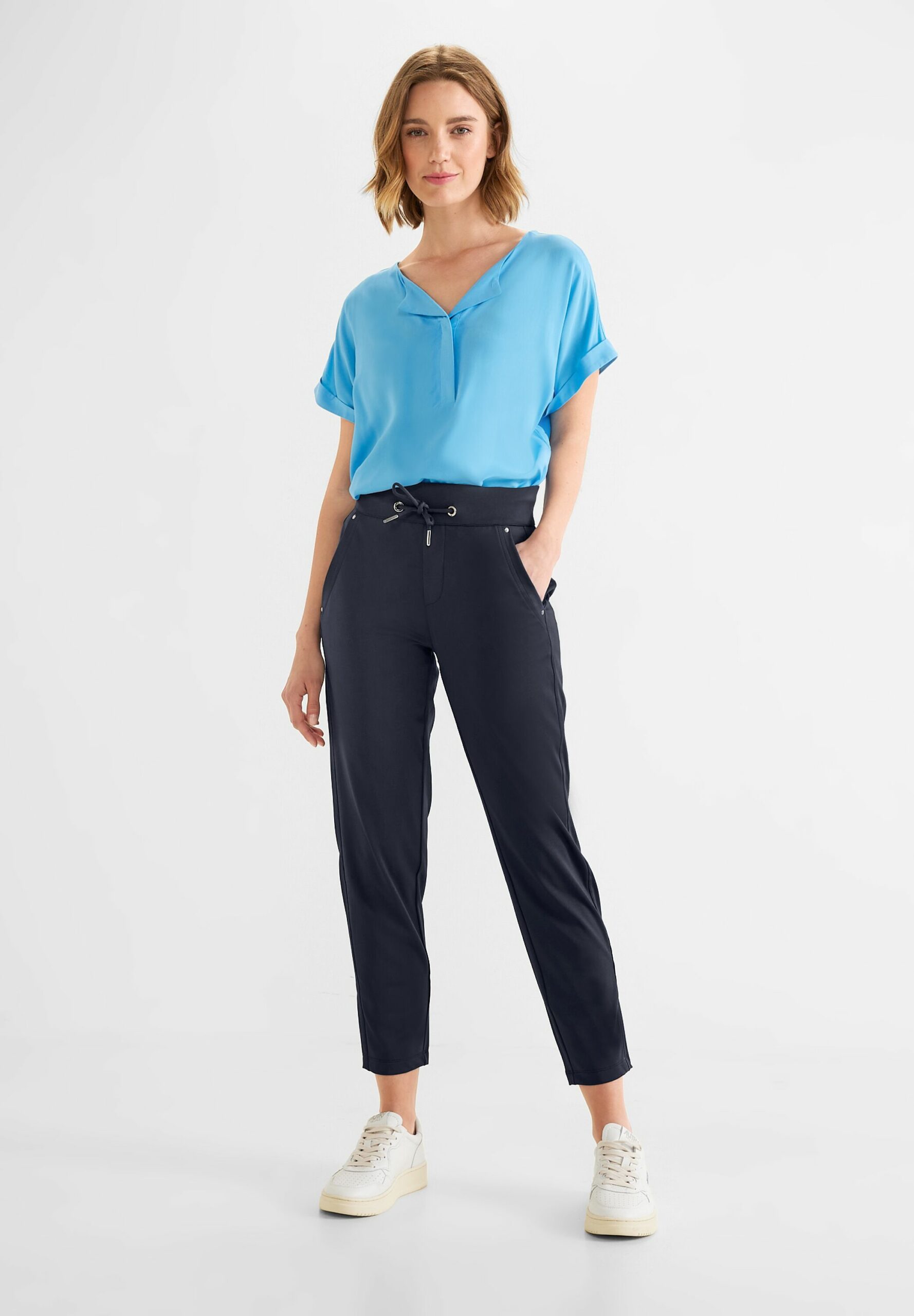 Street One, Damen Loose Fit Hose, Middle Waist, Slim Legs, Elastikbund mit Tunne lzugband, Eingrifftaschen, Kofferware