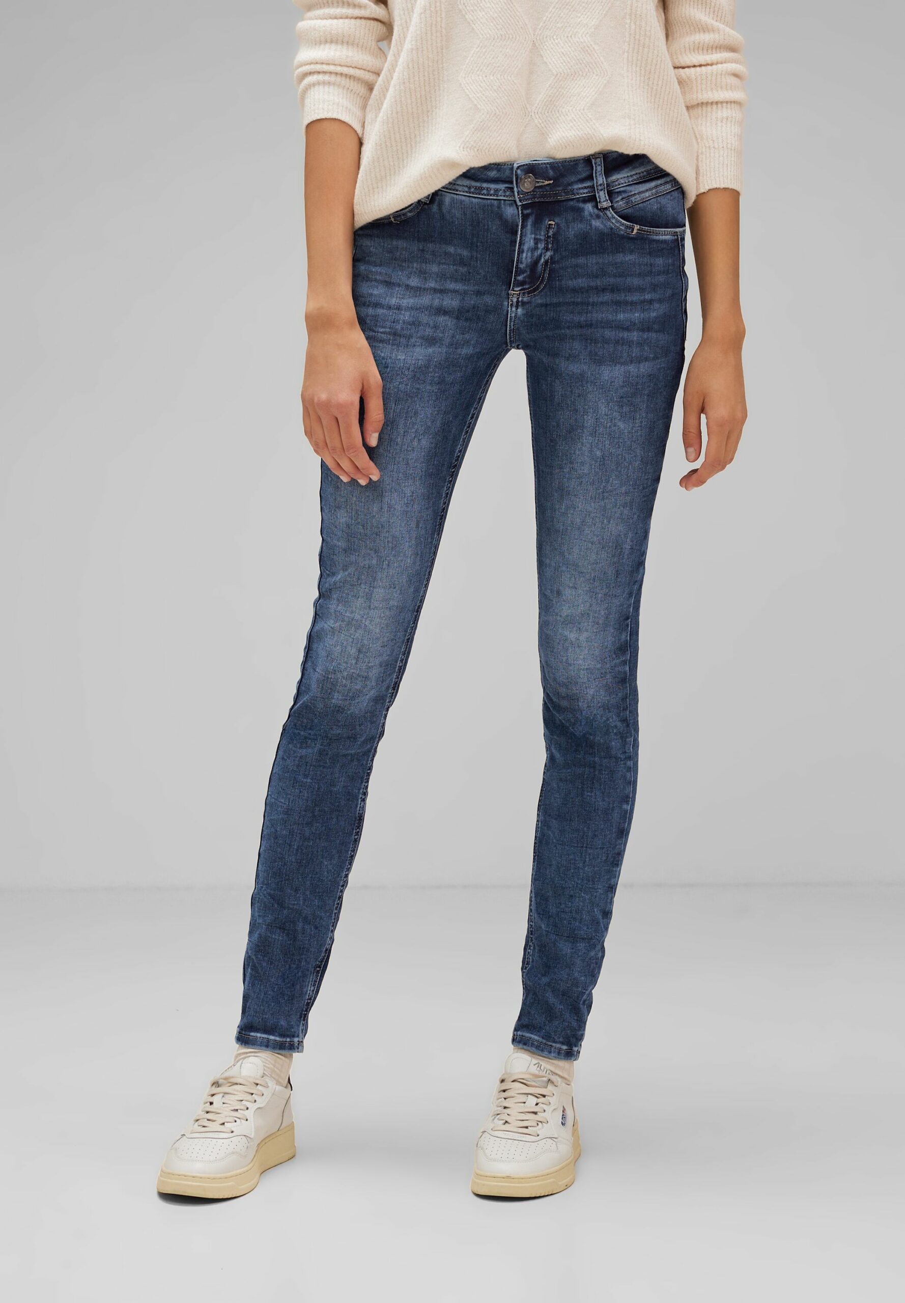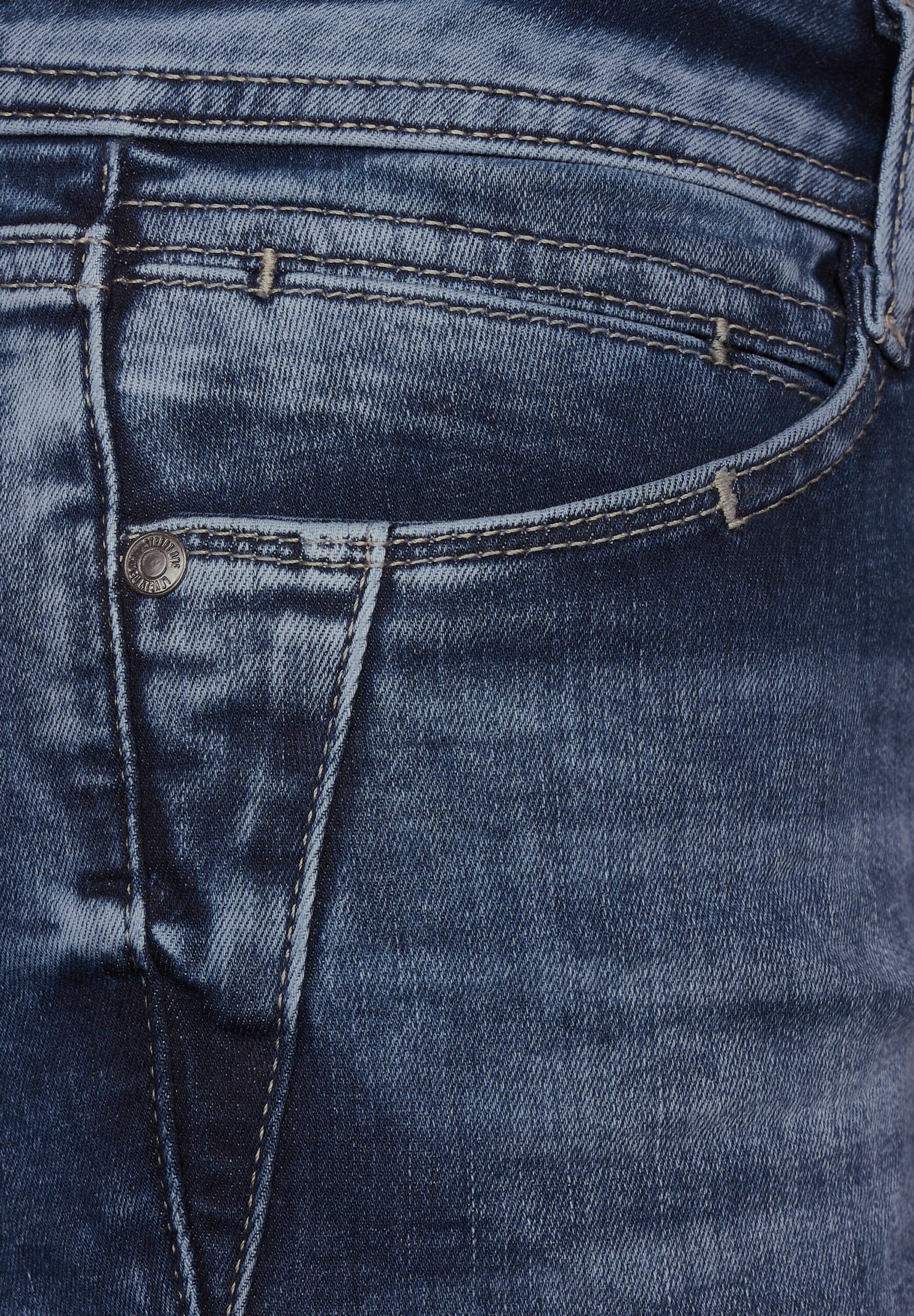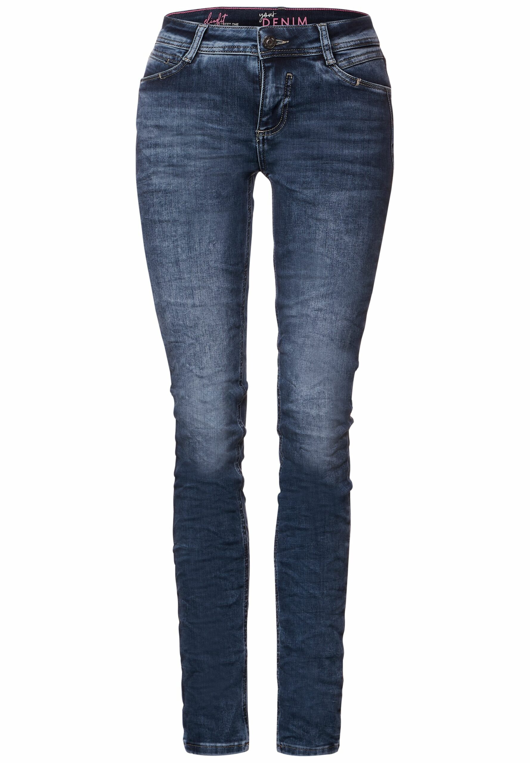 Street One Slim Fit Damenjeans, Middle Waist, Slim Legs, blaue Waschung
