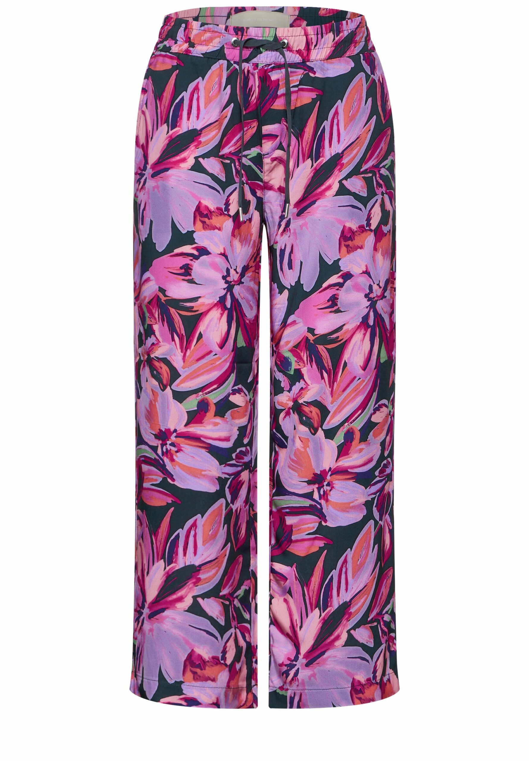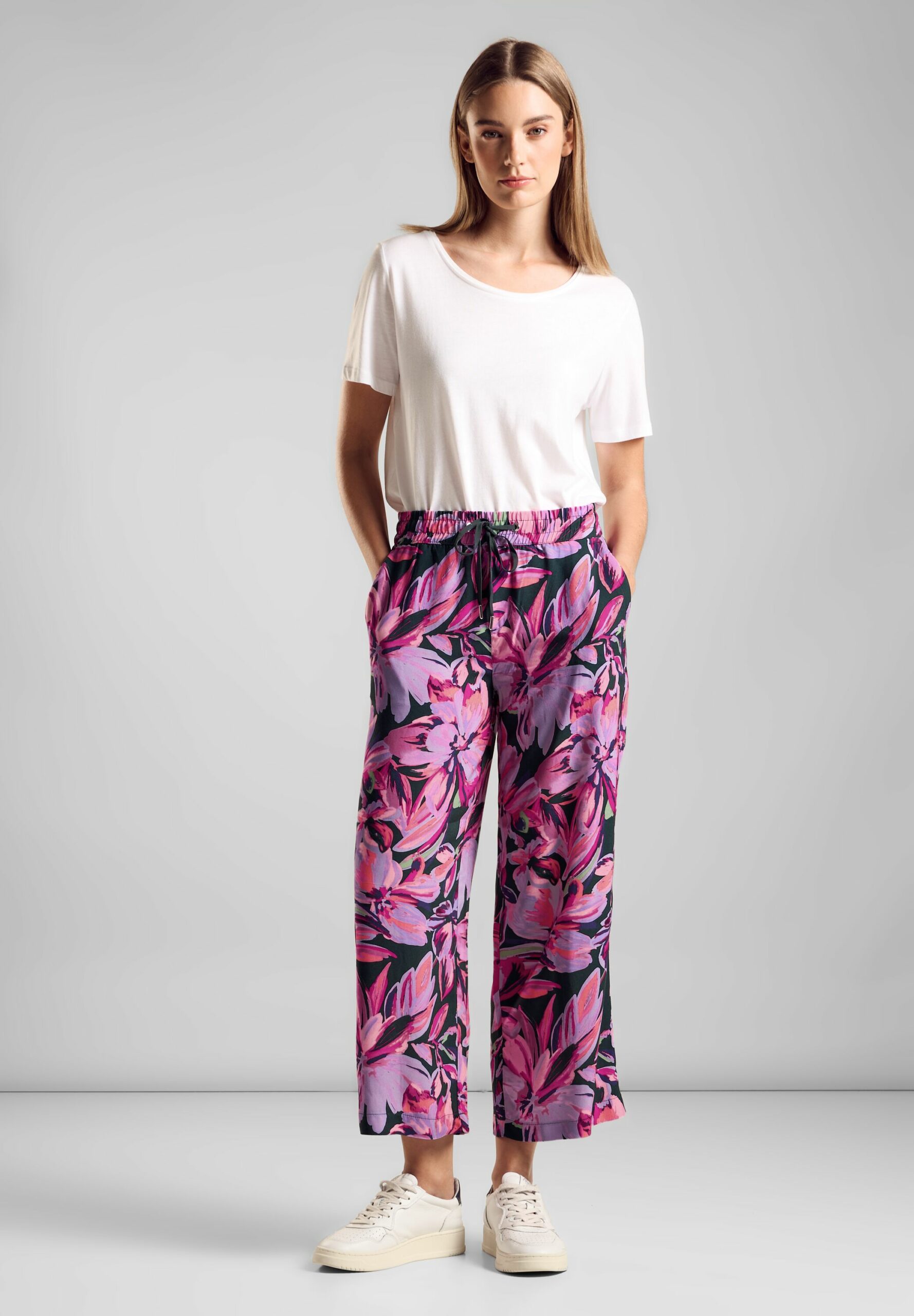 Street One 7/8 Culotte Hose, Sommerhose im Loose Fit, High Waist mit Wide Legs, Gummibund, Tunnelzug und Eingrifftaschen, softe Viskose-Qualität, mehrfarbiges florales Muster